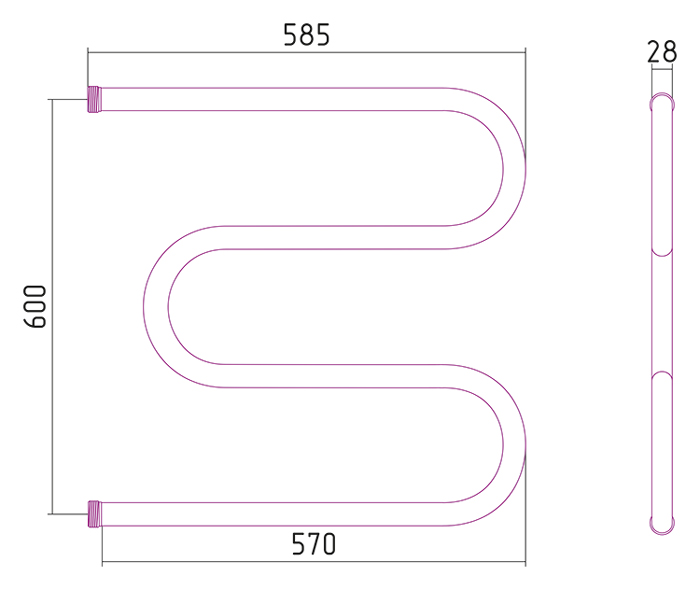 —Полотенцесушитель водяной Стилье М-образный 600*600 резьба-сгон 1"