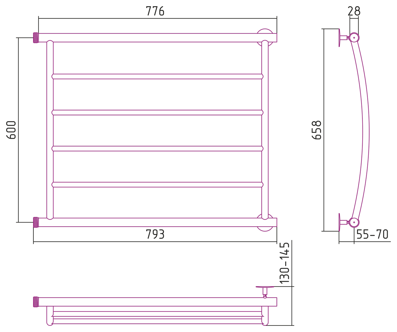 Вертикальное подключение, см