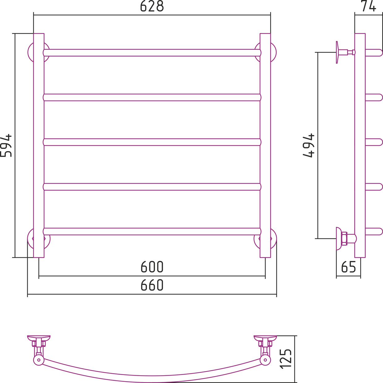 Полотенцесушитель водяной Стилье ВЕРСИЯ-Н2  00622-6060 600х600