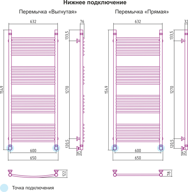 Горизонтальное подключение, см