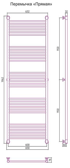 —Полотенцесушитель водяной Сунержа БОГЕМА+ прямая 1900х600